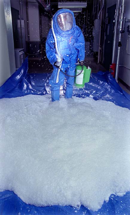 Featured Opportunity • Sandia Decon Formulation co-developer Maher Tadros demonstrates application of the formulation from a pressurized canister. The foam could be sprayed from handheld canisters or from trucks, or it could be incorporated into high-profile government military buildings. The formulation is non-toxic. Protective clothing is required to protect decontamination personnel from chemical...